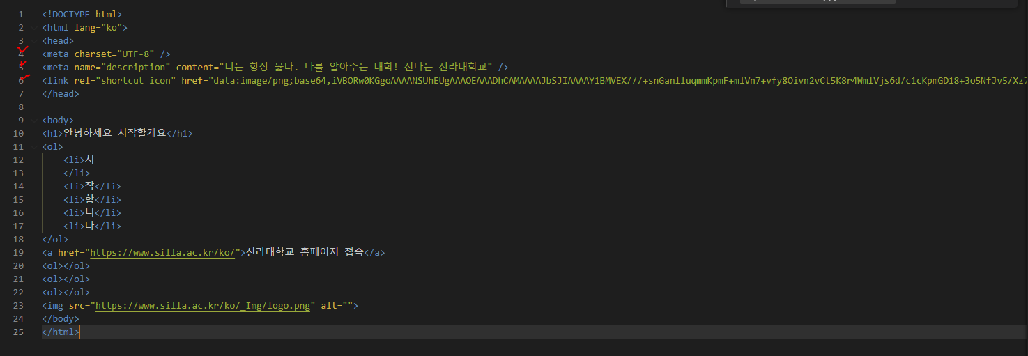 <link rel ="sortcut icon" href=" "> : 아이콘 이미지