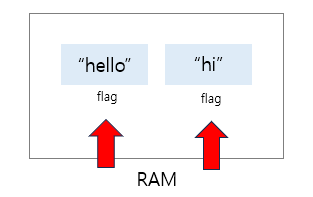 flag(변수) | "hello", 즉 변수에 담긴 값을 보유한 곳, 변수의 주소 공간 |